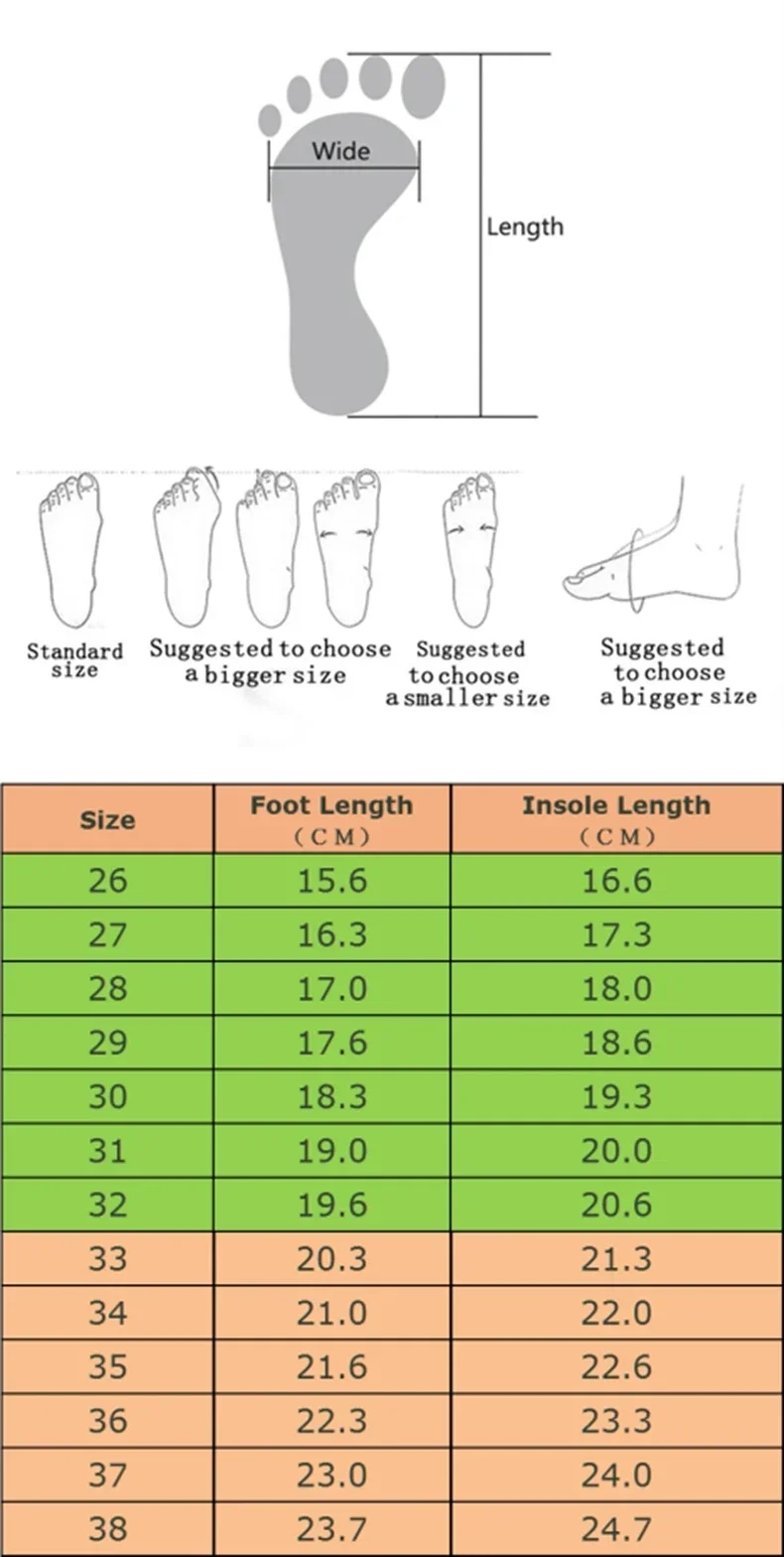 For example, if your foot length is 18cm, you'd better choose size 30.