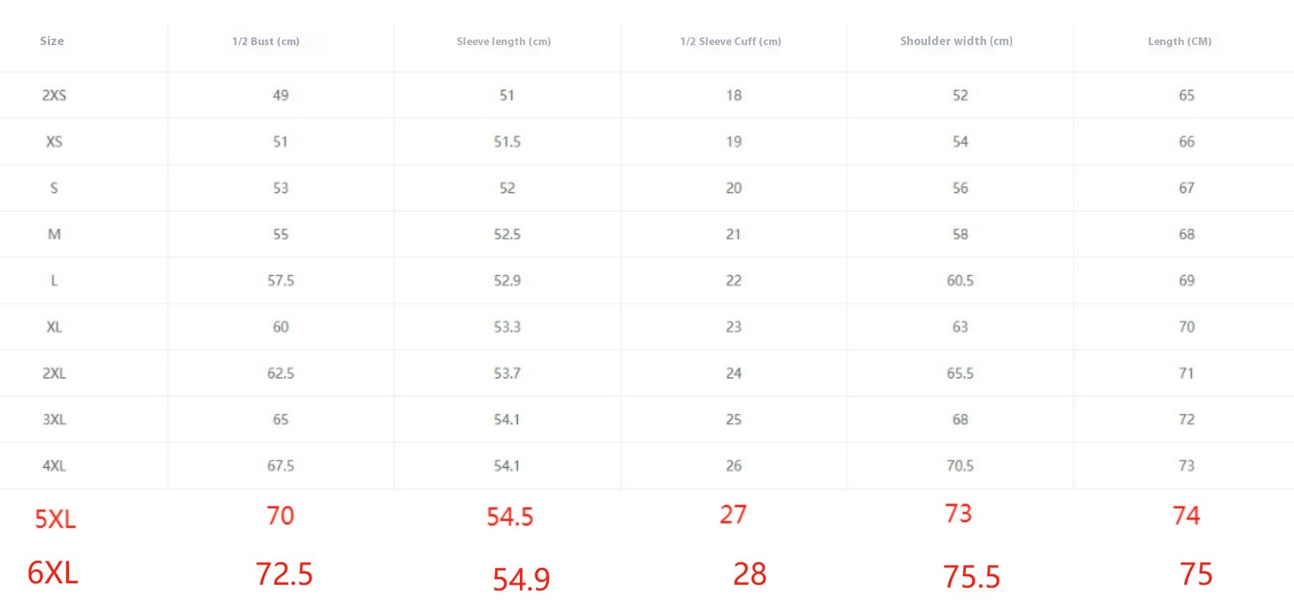 Size: XXS,XS,S,M,L,XL,2XL,3XL,4XL,5XL,6XL
