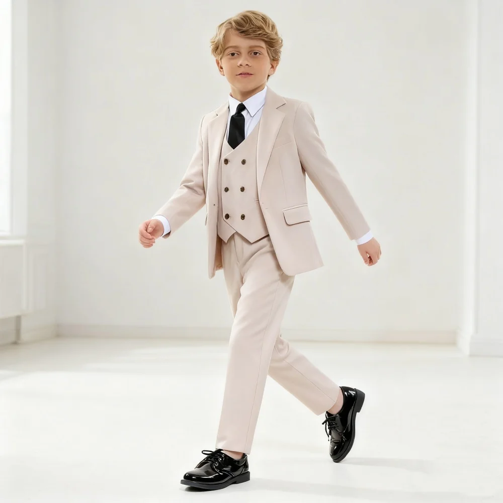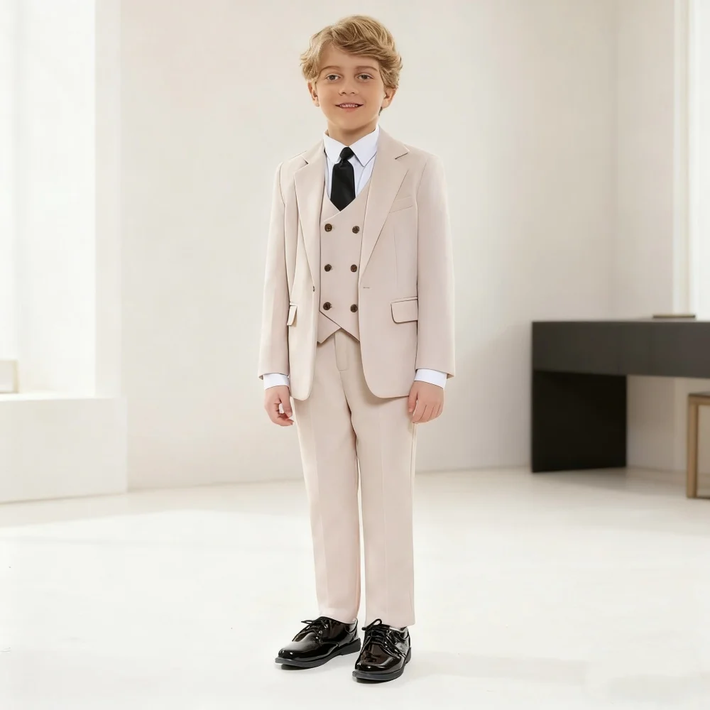 Stylish Boys' Solid Suits for Boys 3-Piece Smart Handsome Boy's Tuxedo Formal Outfit For Kids Blazer Vest And Pants For Party