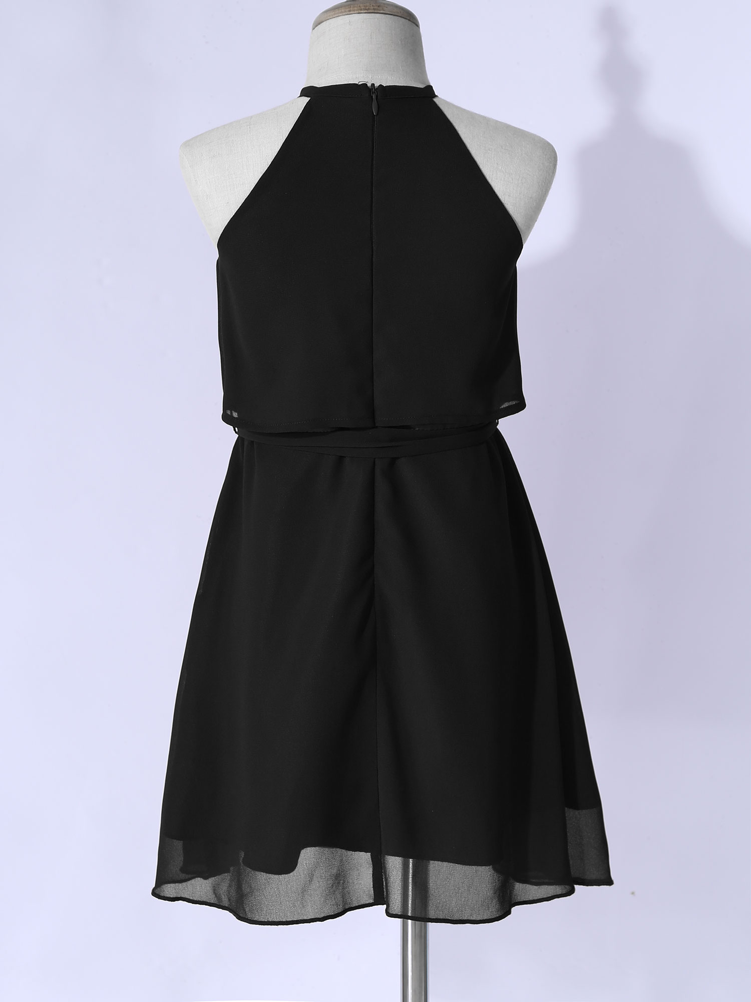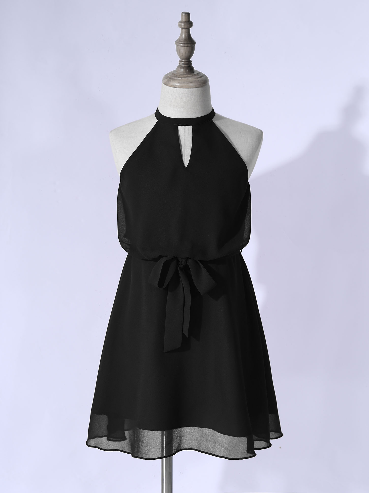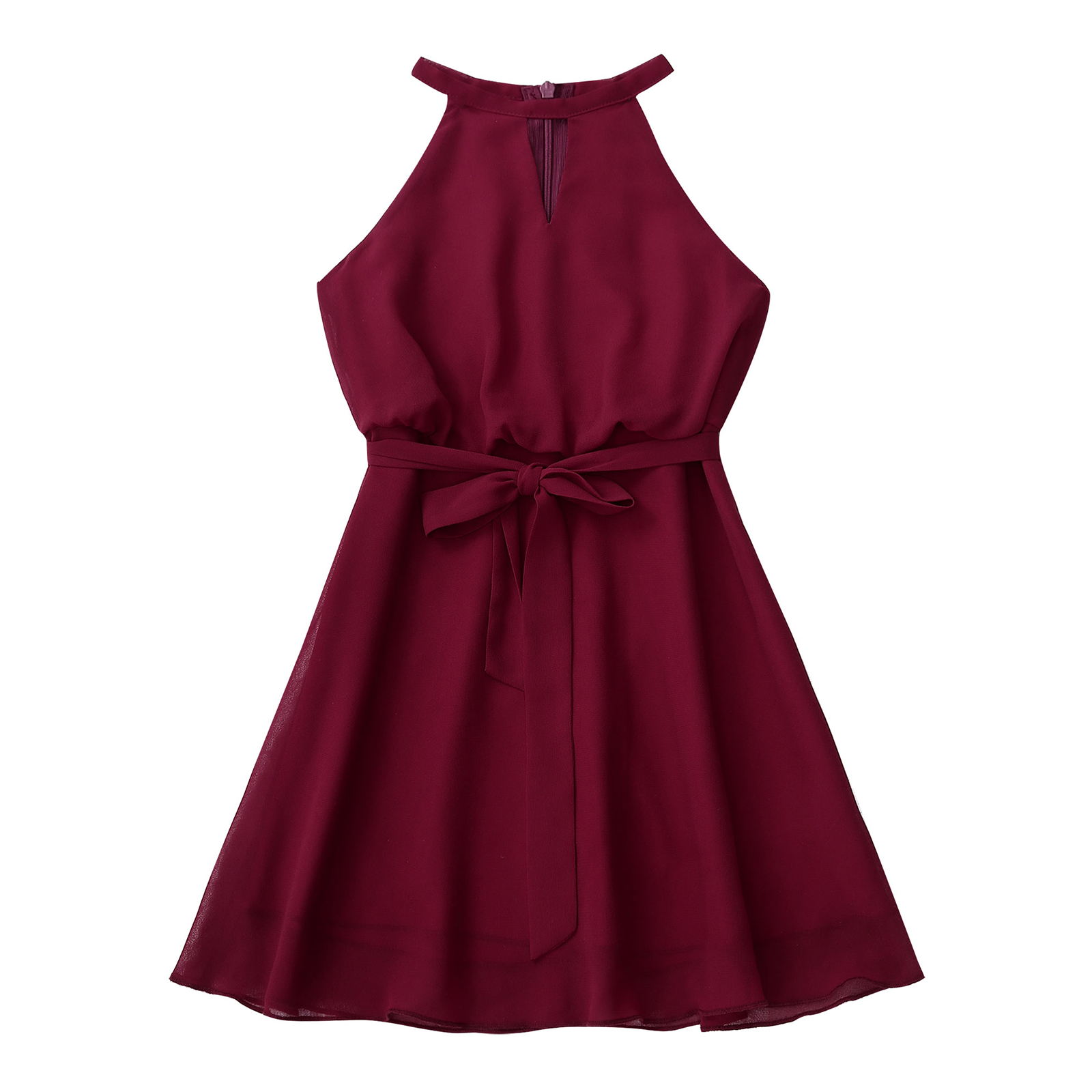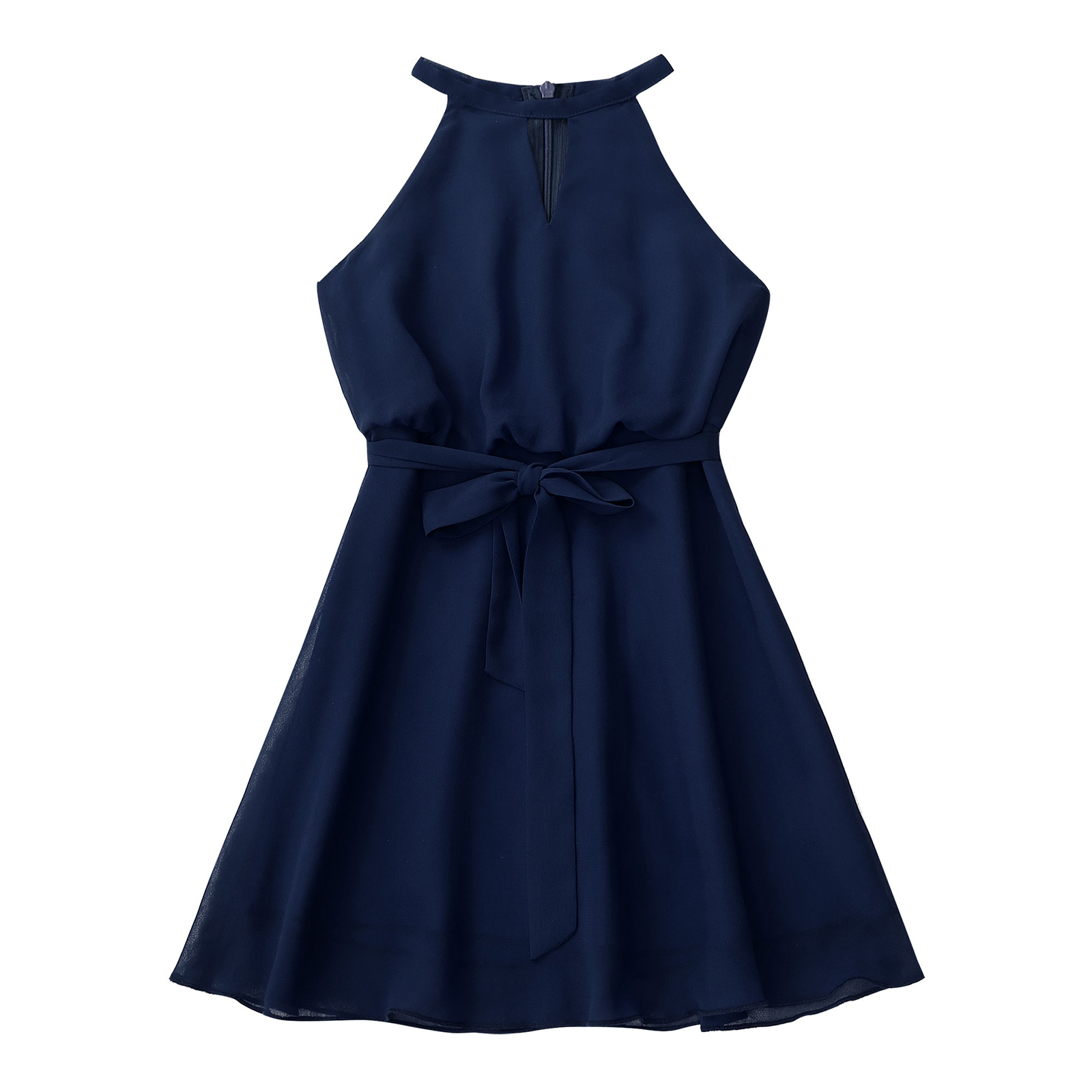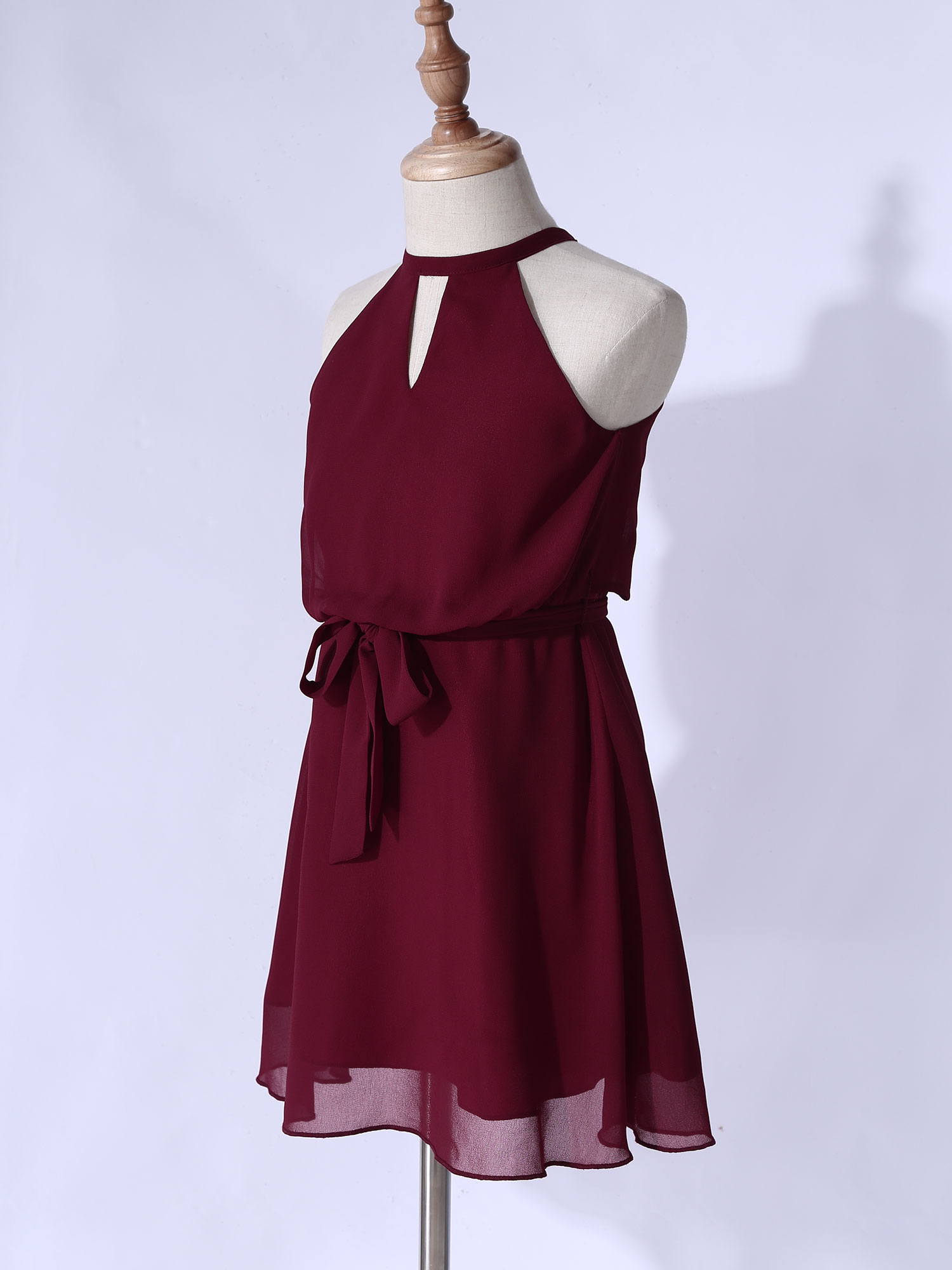 Kids girls flowing chiffon dress halter sleeveless high waist fully lined big girl dress for party wedding prom.