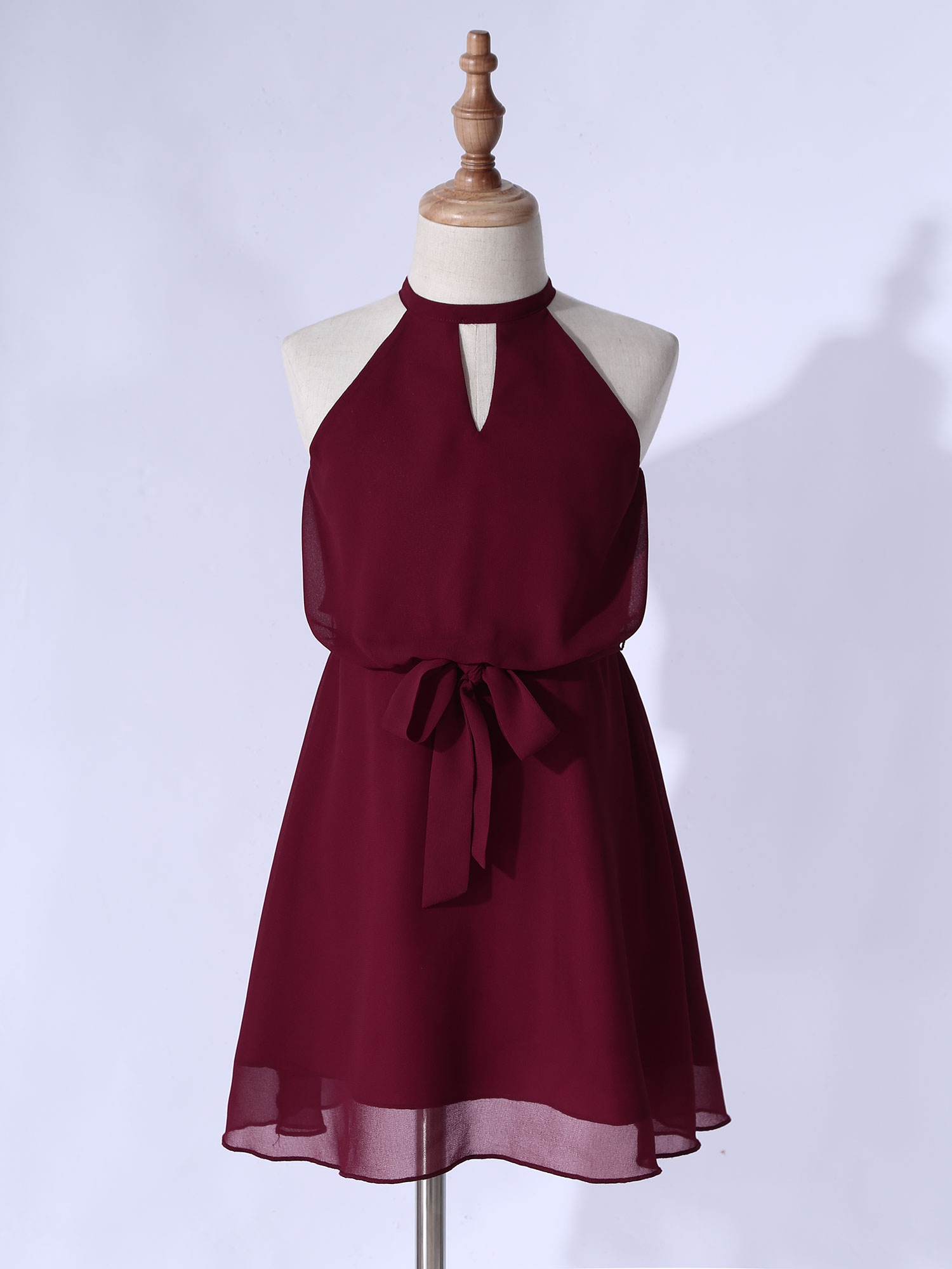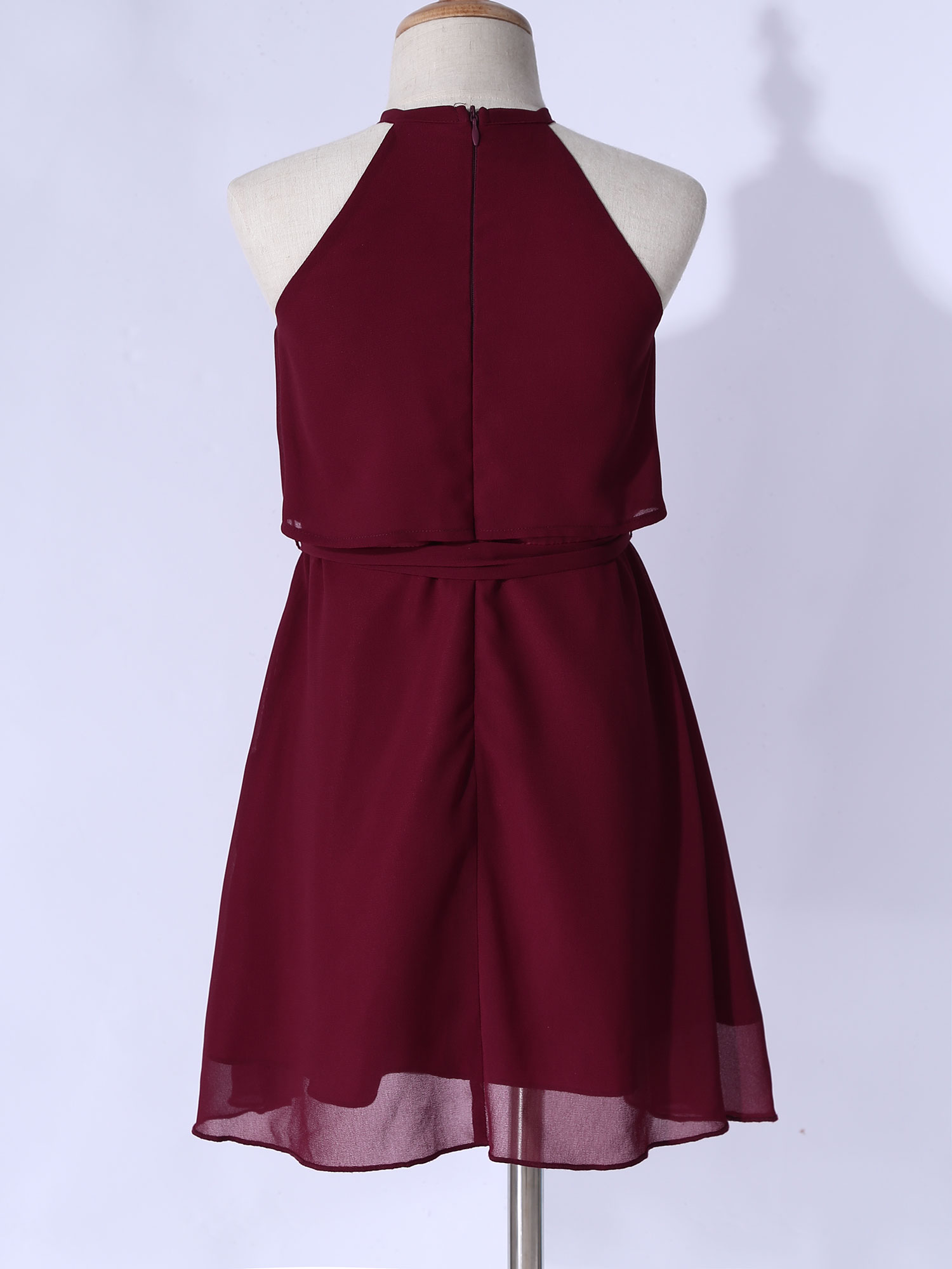 The dress features with halter, sleeveless, key hole at front, high waist and flowing chiffon layer, fully lined, making your girl elegant and noble.