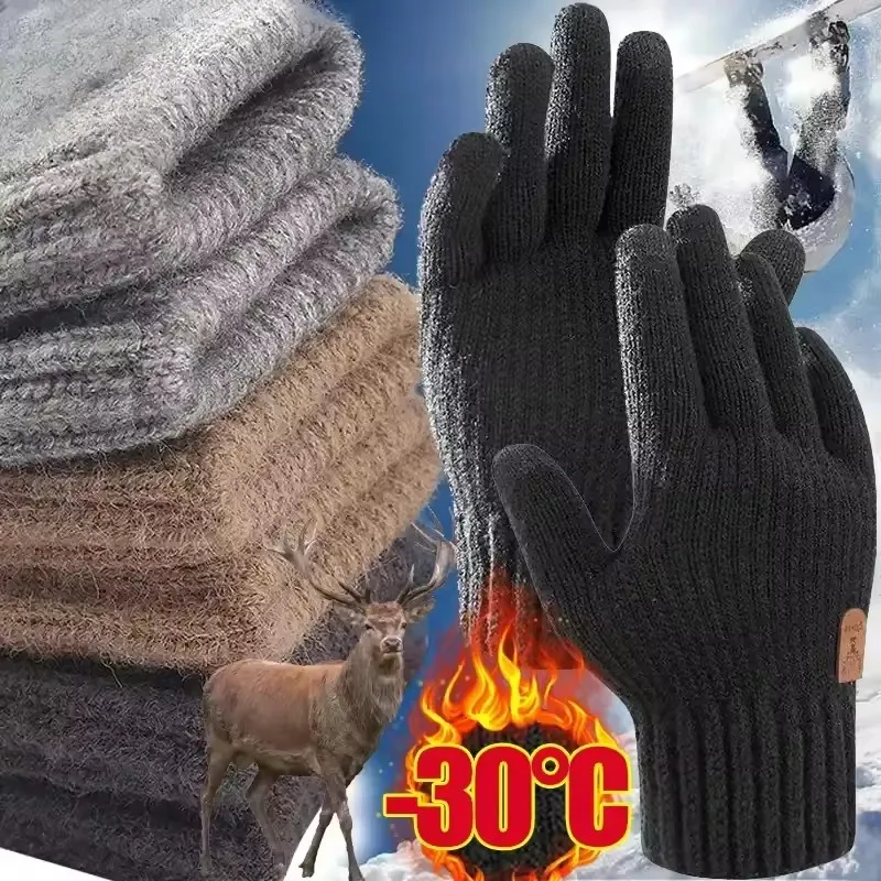 Winter Knitted Wool Warm Gloves for Men's and Women's Touch Screen Thickened Full Finger Gloves Outdoor Cycling Skiing Gloves