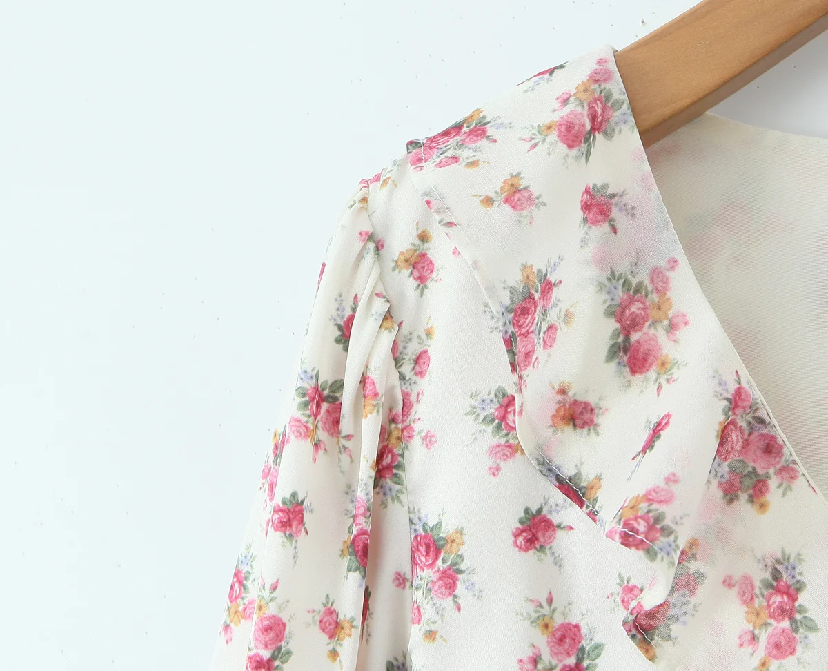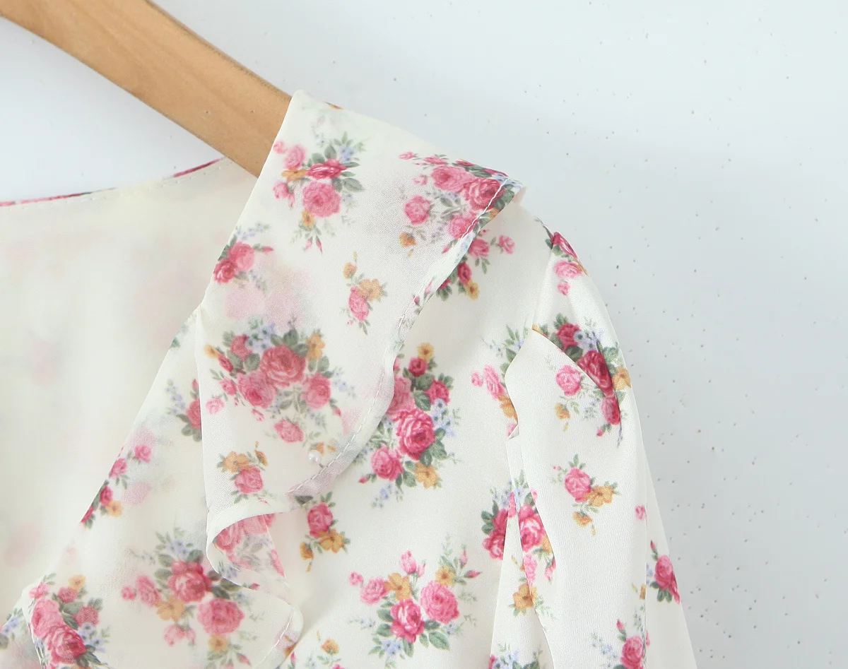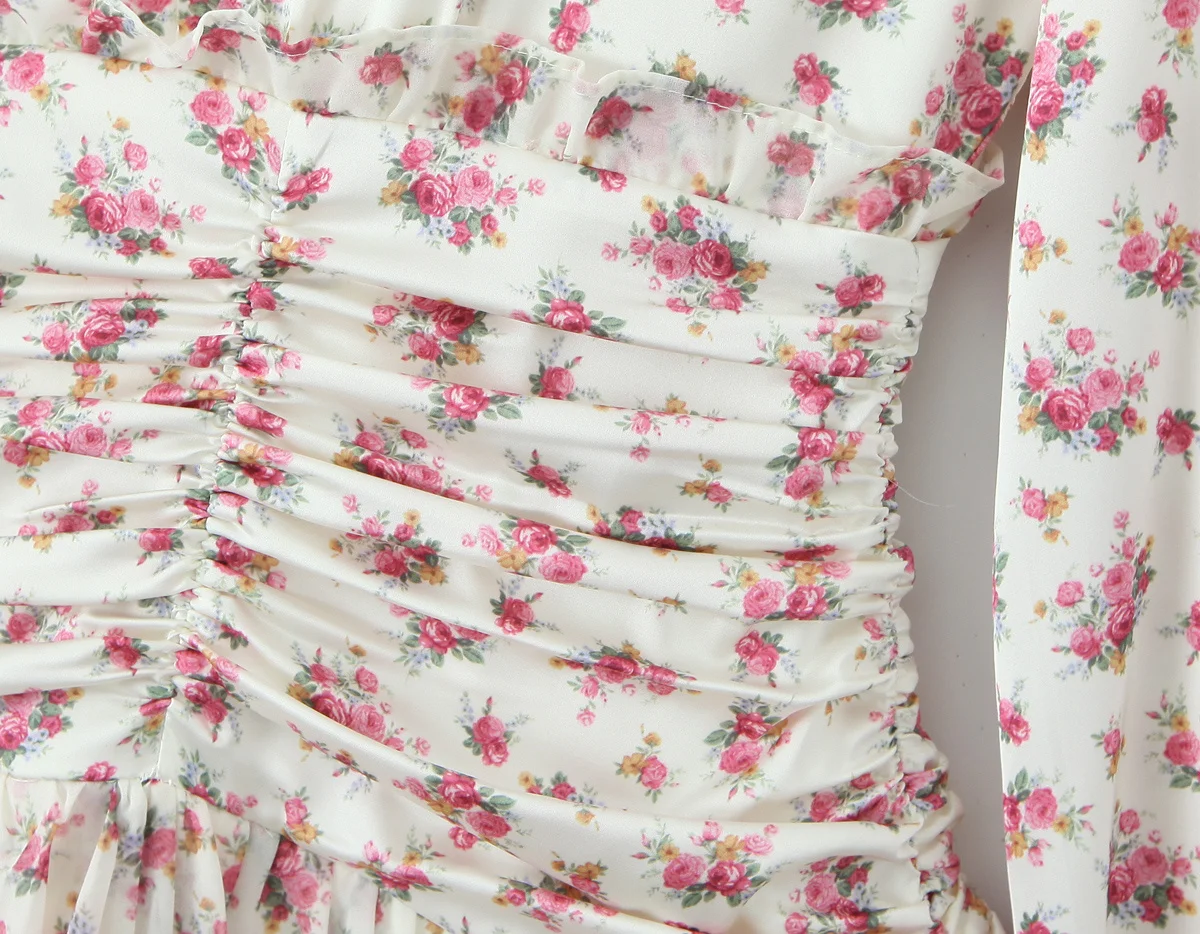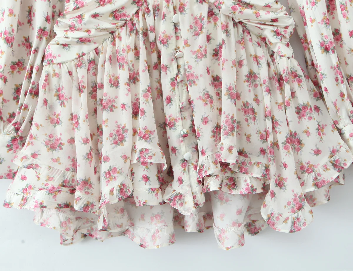 Spring 2025 Women Sweet Floral Print Ruffle Mini Dress