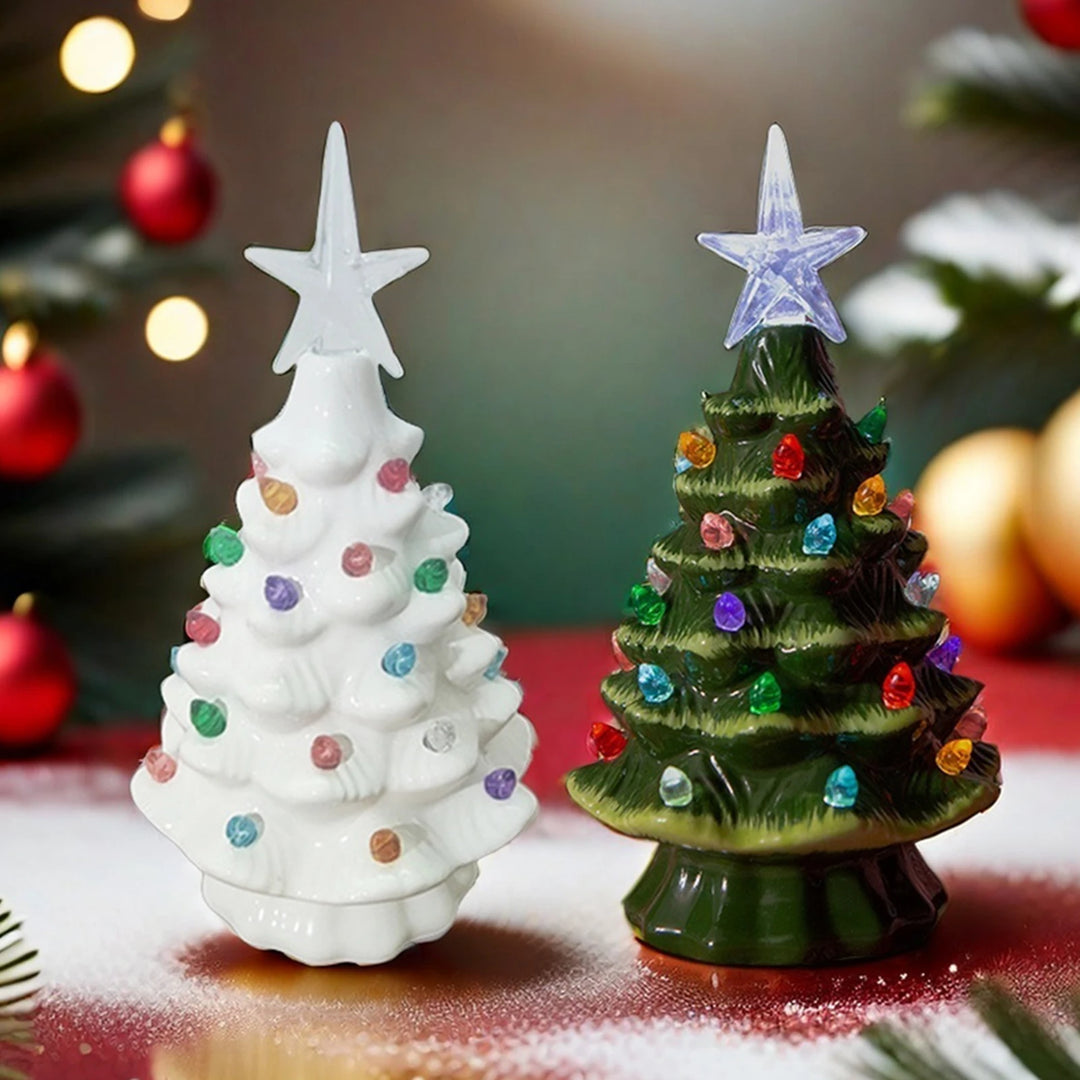 Christmas Tree Night Light Pre-Lit Ceramic Tree Decoration with LED Light Hand Painted Decorative Ornaments for Tabletop