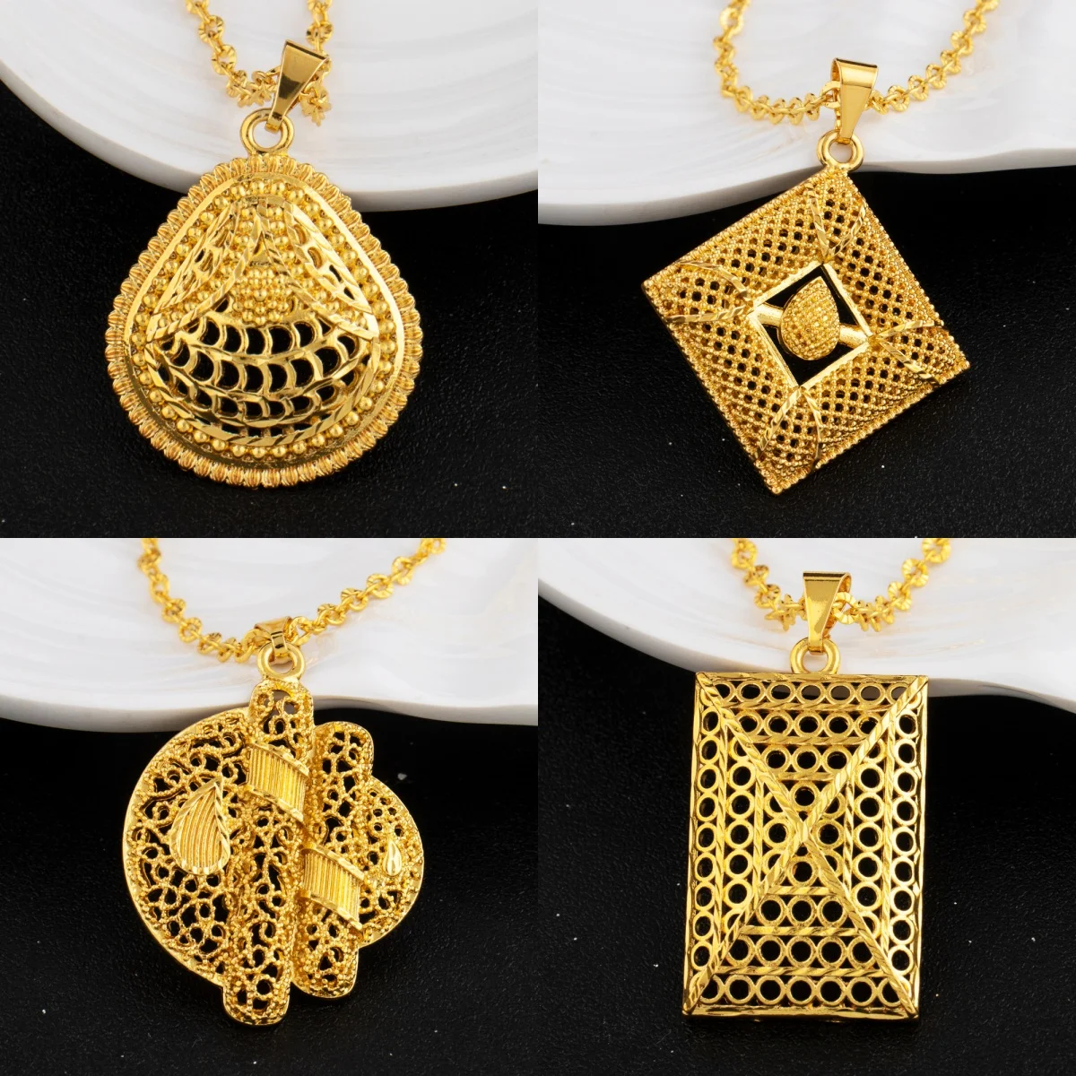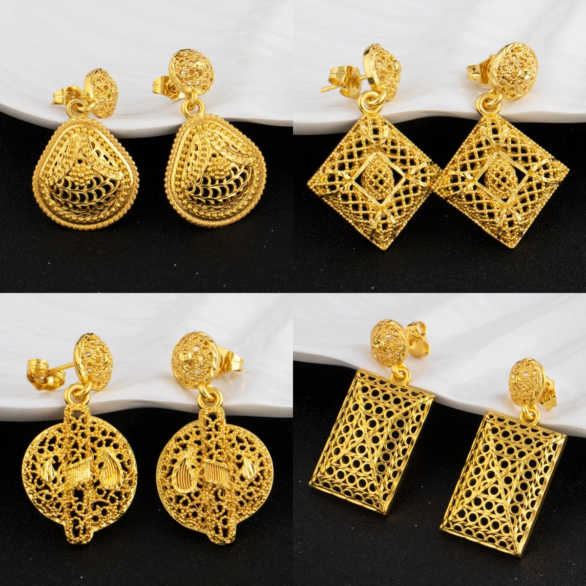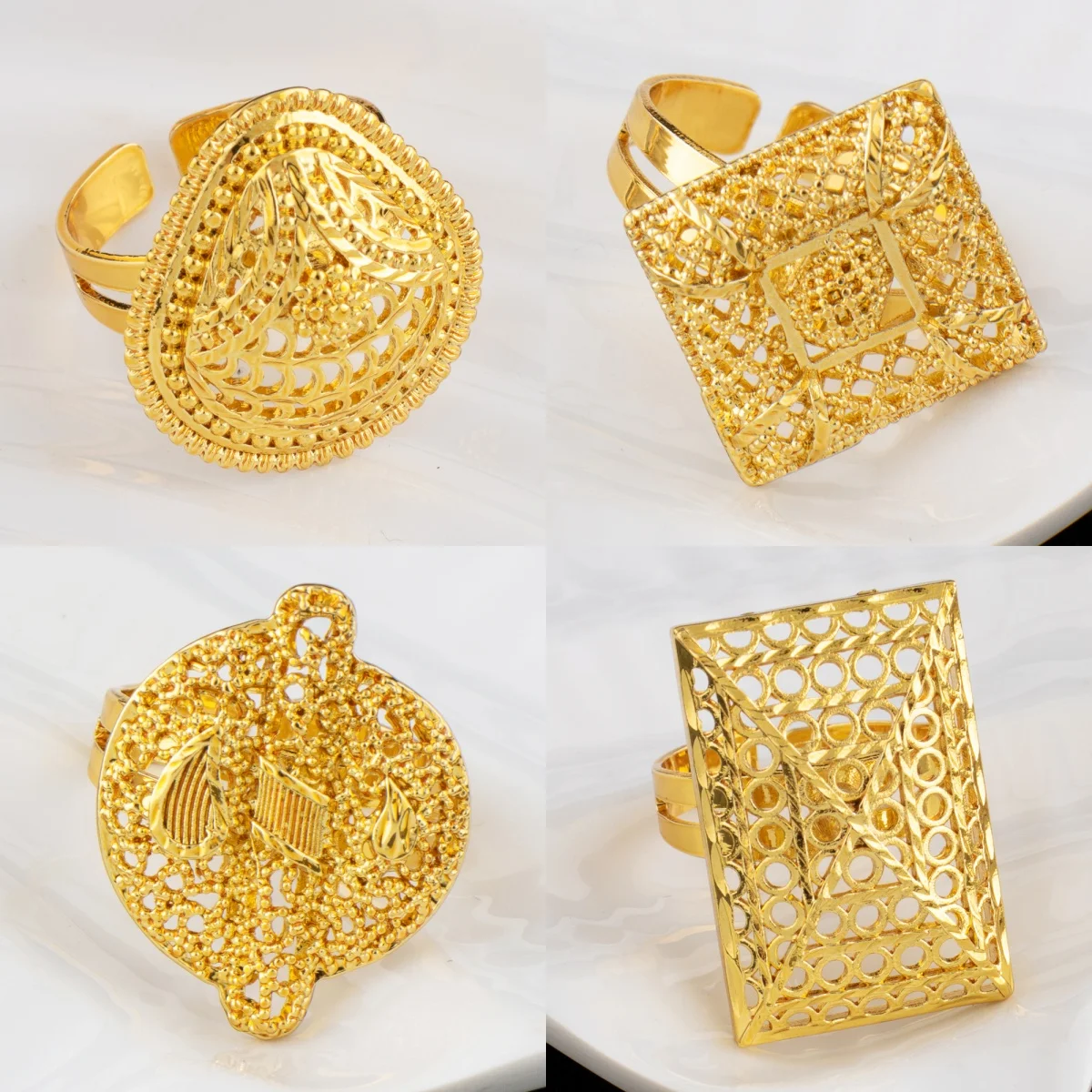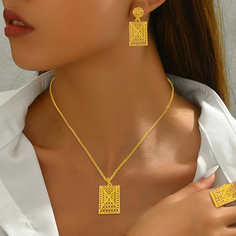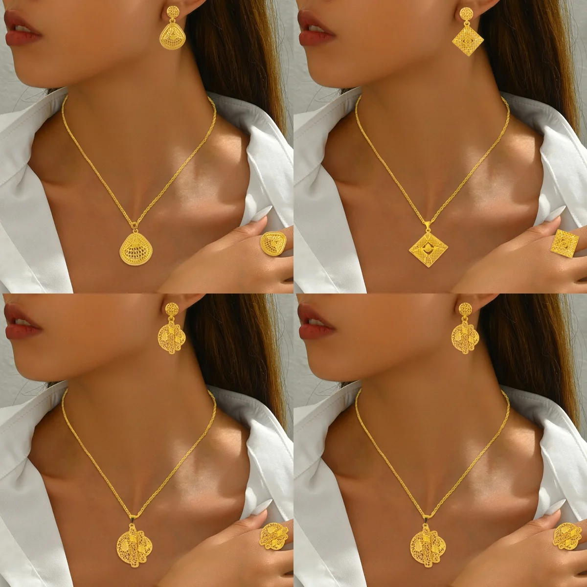 Mid East Gold-plated 3pcs Jewelry Set For Women India Dubai Jewelry Geometry Earrings Necklace Ring Set Apply for Party Wedding
