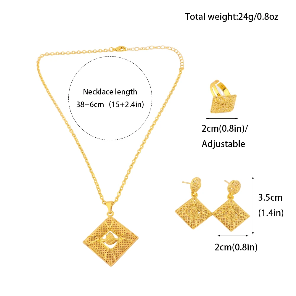 YM Gold Color Hollow Out Women Jewelry Set Mid East Dubai Earrings Ring Nigeria Necklace Jewelry Wholesale Gift for Mother's Day