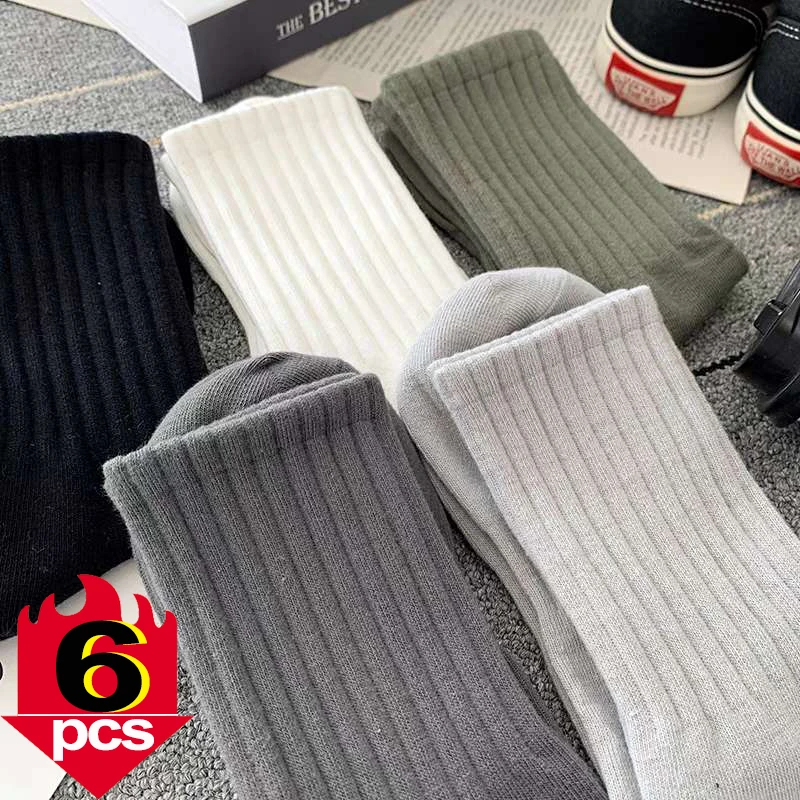1/3pairs Cotton Men Socks Sport Mid Tube Autumn Winter Knitted Warm Cold-proof Stocking Black White Gray Simple Indoor Floor Sox