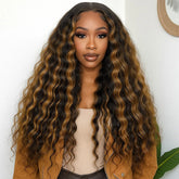 1b30 Highlight Half wig wear and go 3in1 Headband Wigs Human Hair Water Wave Wigs 100% Hair Curly wig Deep Wave Human Hair Wig