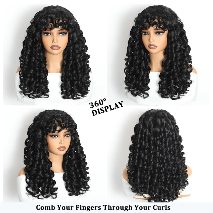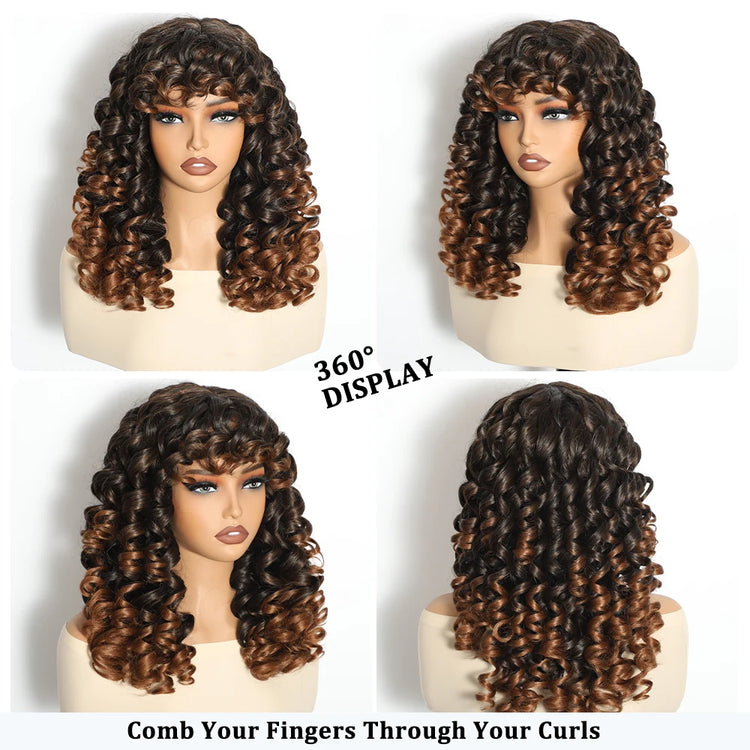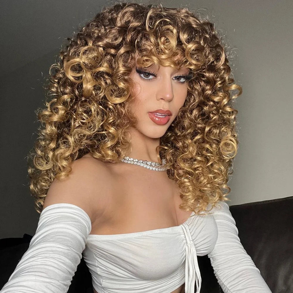 Curly Wig for Women Ombre Blonde Long Curly Wave Wigs with Bangs Synthetic Wig Natural Cosplay Party Heat Resistant Hair