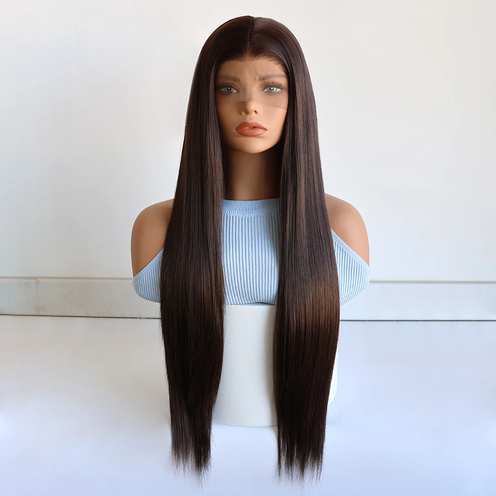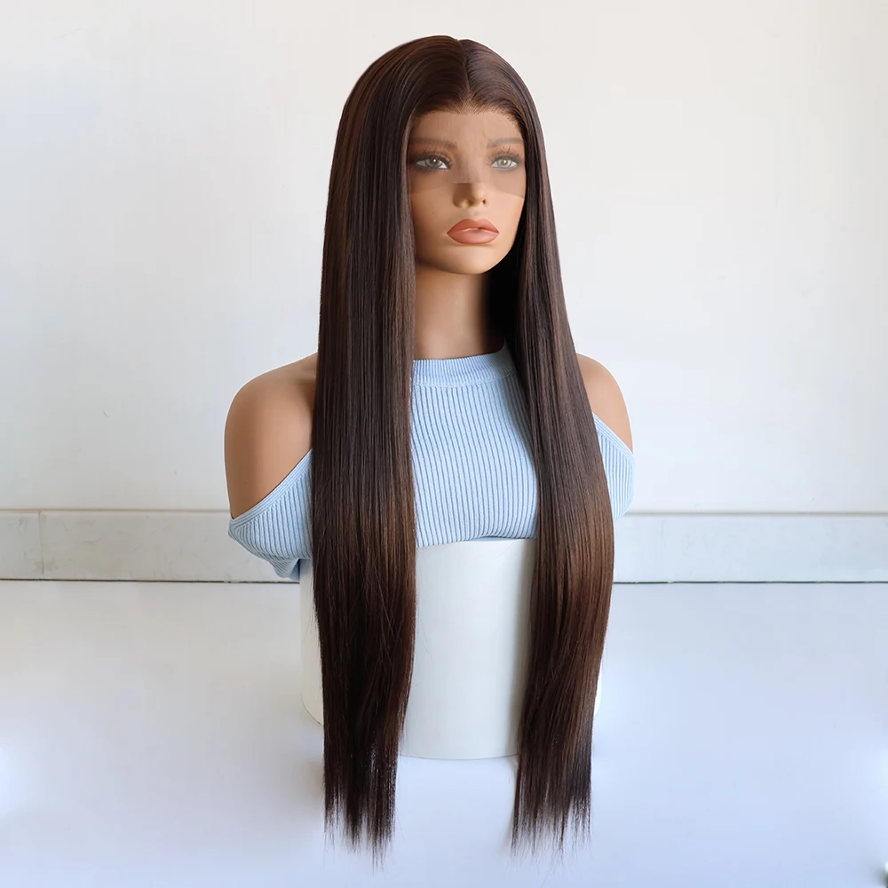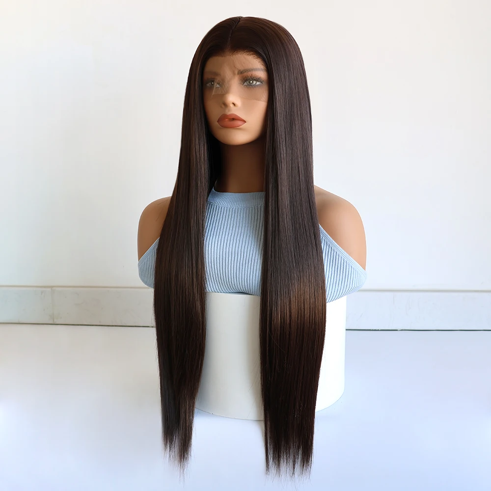 Synthetic Straight Hair Density: 180% Density Silky Straight Lace Frontal Wigs Looks More Natural And Full