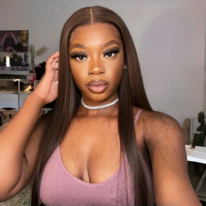 Chocolate Brown Color Lace Front Wigs Detail: HD Transparent Lace, Blends Perfectly Into Your Skin, Soft And Beautiful