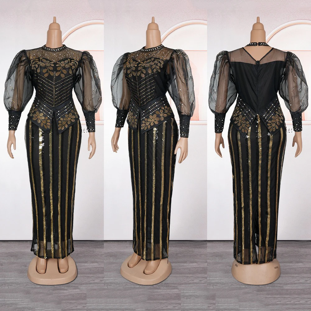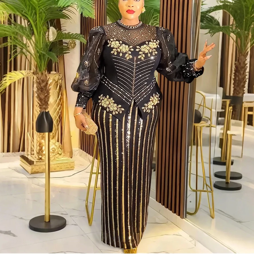 Elegant African Dresses for Woman 2025 New Sequined Diamond Plus Size Luxury Evening Party Dashiki Ankara Outfits Robes Clothes Wholesale Items for Small Business Clothes for Resale Clothing New Arrivals Style Hot