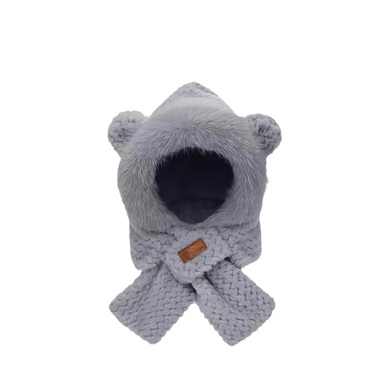 Name: New Winter Plush Bear Neck Warmer Hat for Women, Windproof Ear Warmers, Thickened for Cycling, Versatile Hat and Scarf Set 2