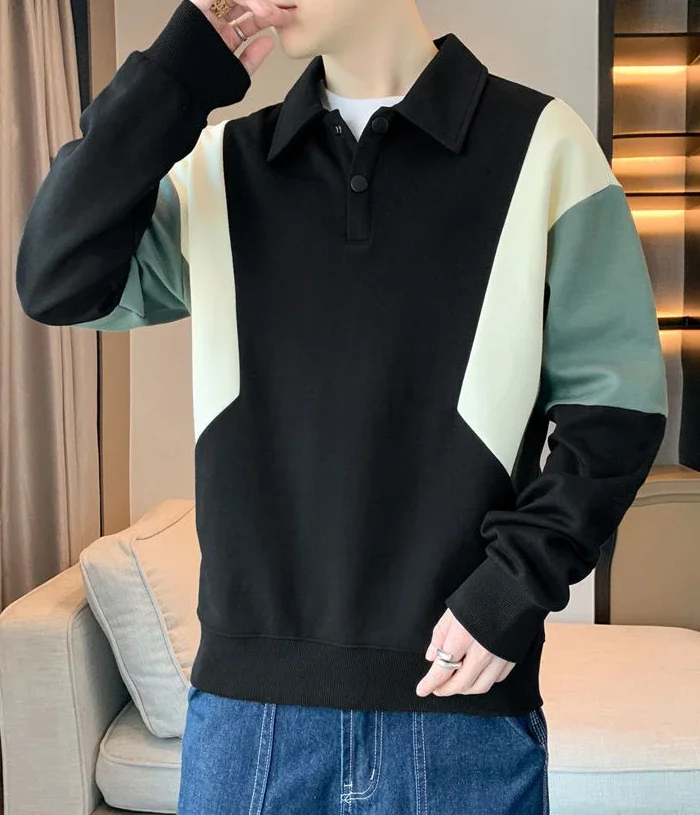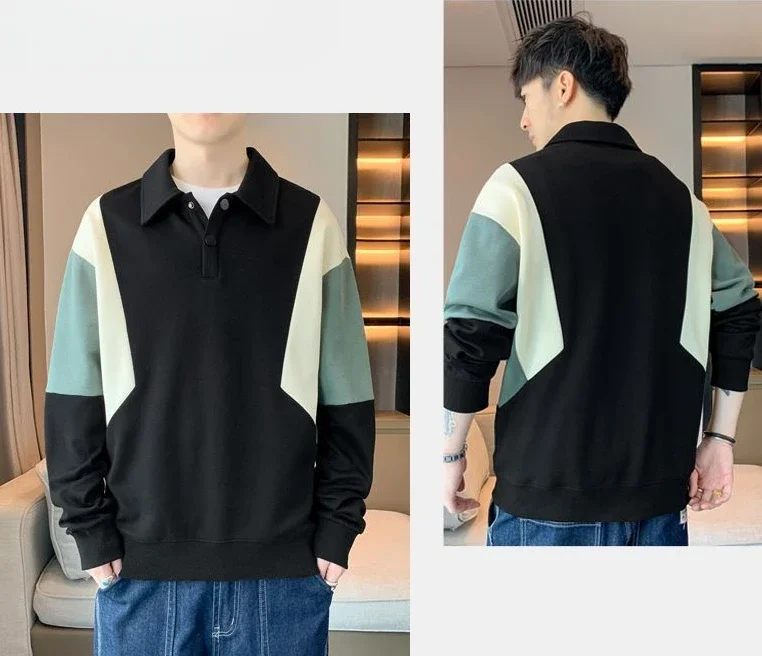 Polo T Shirt for Men Winter Pullovers Oversize Man Sweatshirt Formal Big Size Business With Collar Elasticity Emo Streetwear S