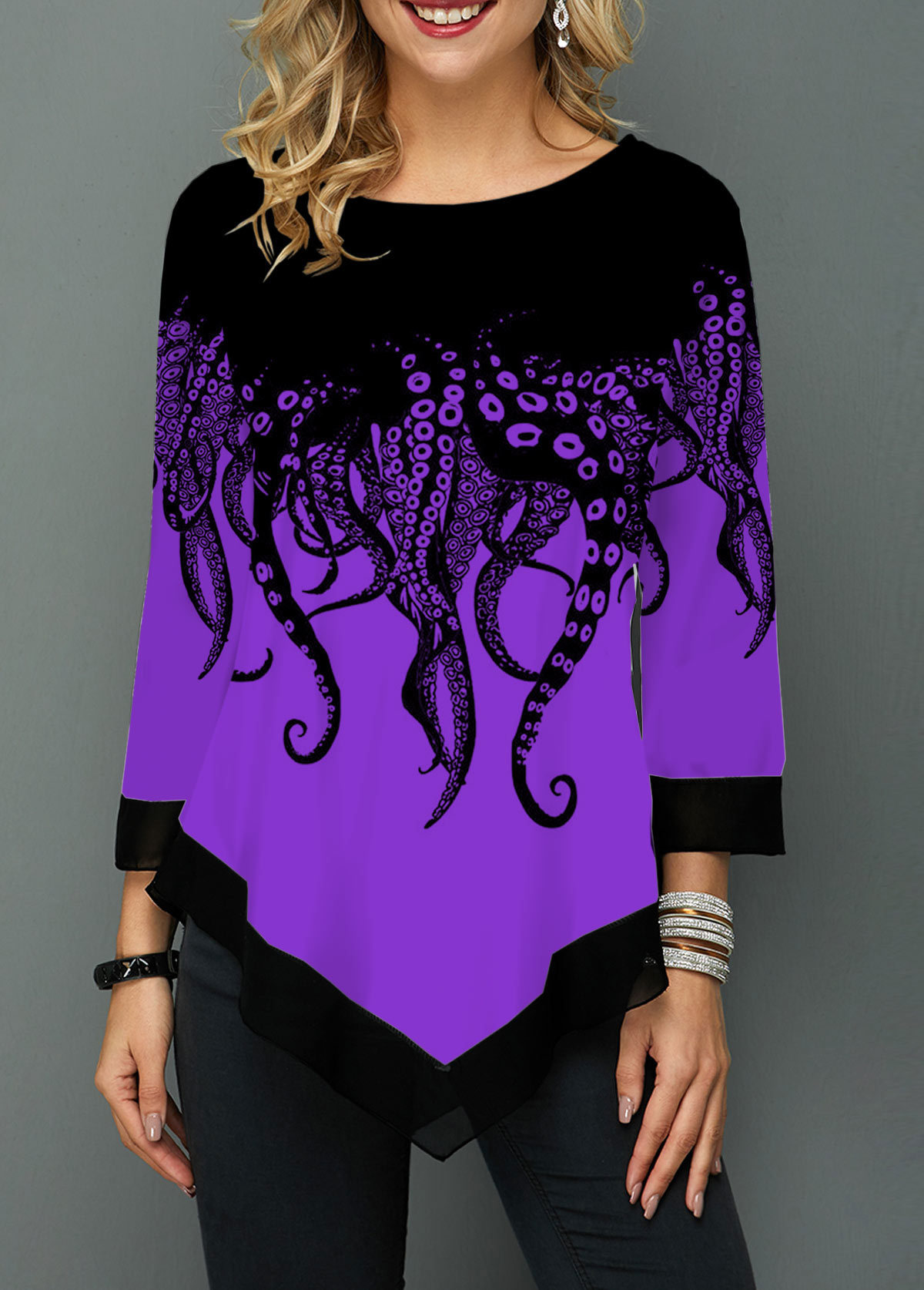 Printed stitching cropped sleeve T-shirt Beauty hair & fashionfj
