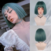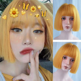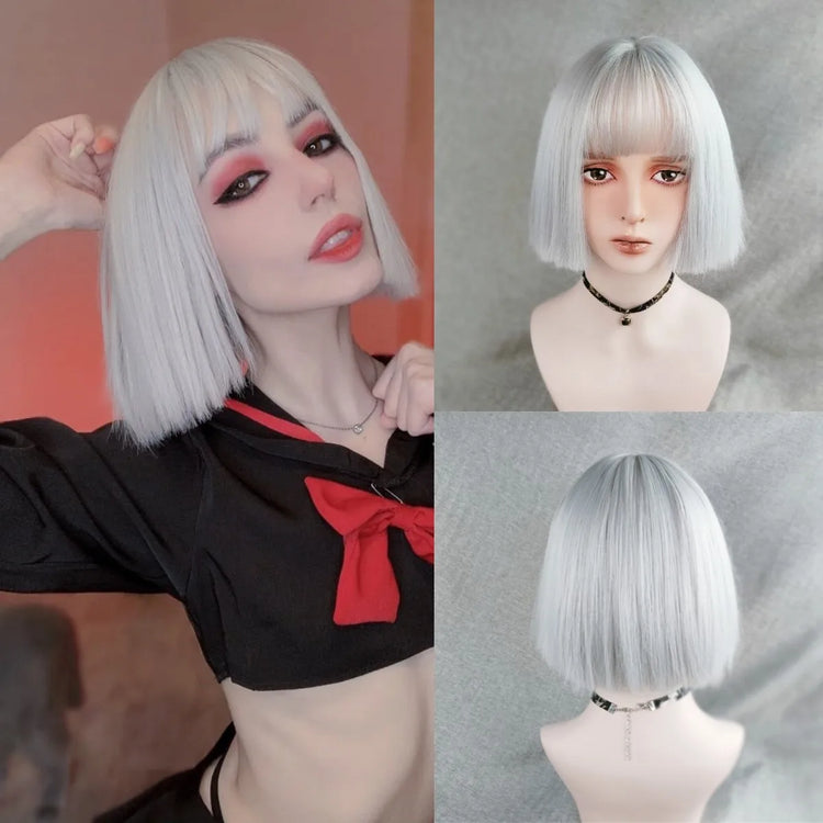 Short Bob Straight Synthetic Blonde Wig With Bangs Girl Female Crochet Hair Silver White Pink Orange Wig