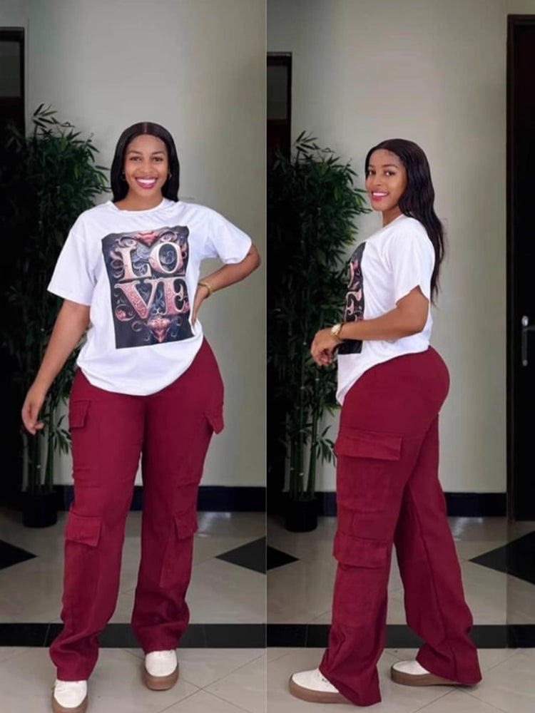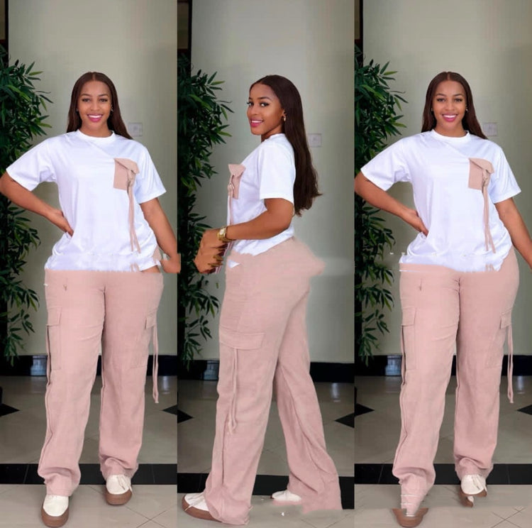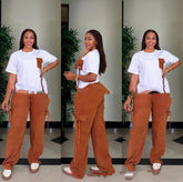 Simple Loose Pants Special Multi-bag Two-piece Set