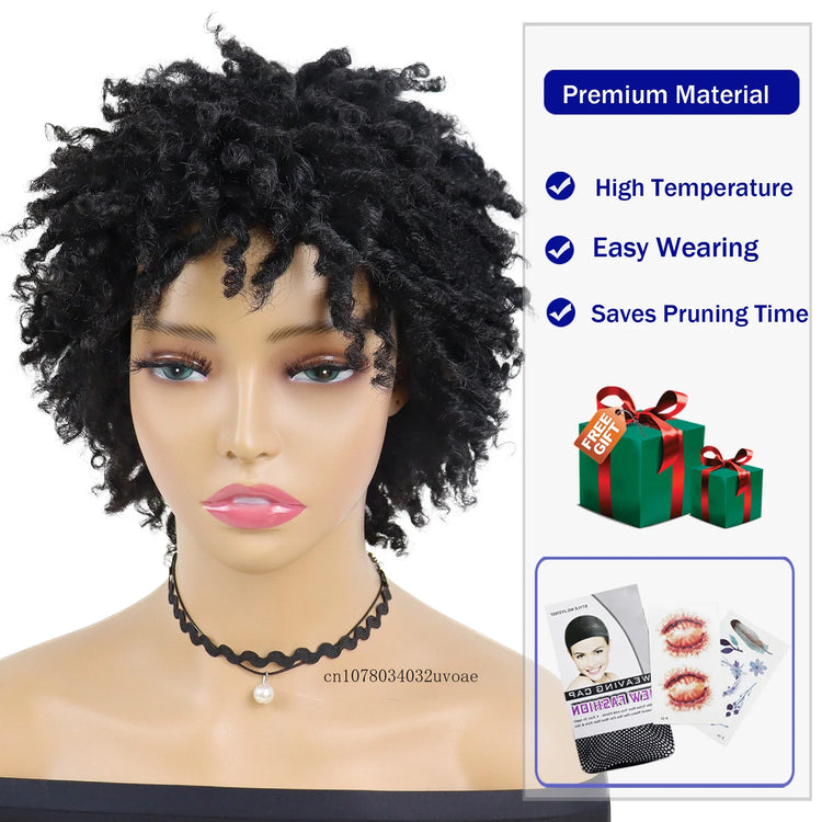 Synthetic Braided Wigs for Women Locs Crochet Twist Hair Short Afro Wig Ladies Dreadlock Wig Black Daily Curly Cool Girl Bouncy