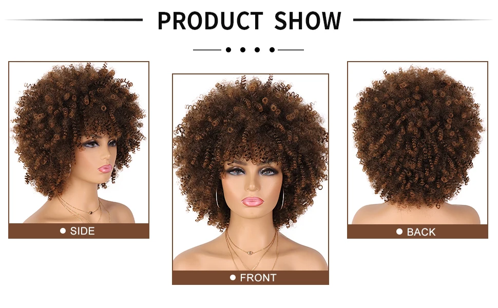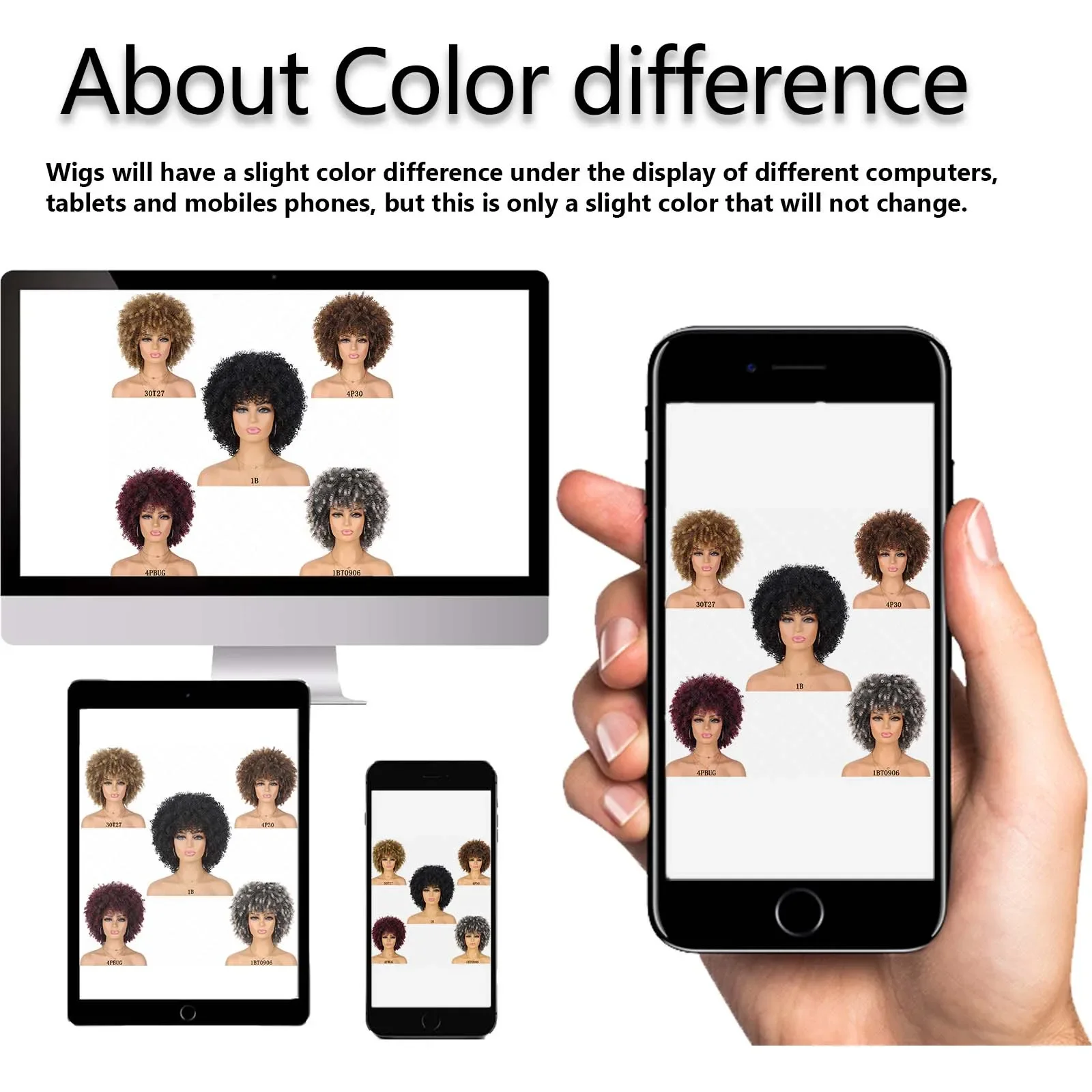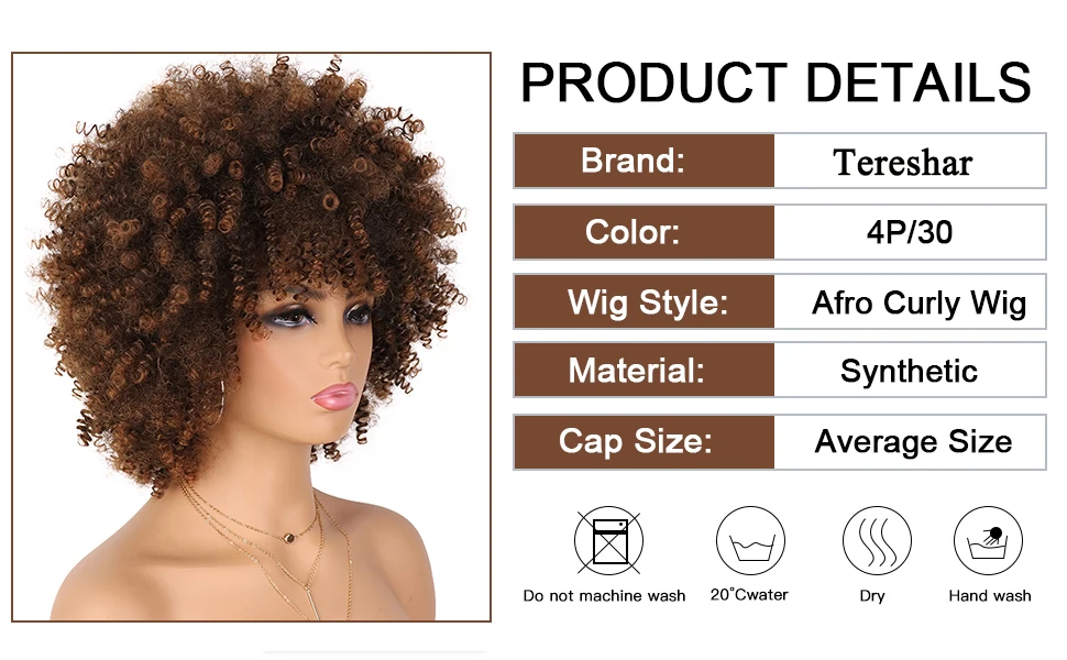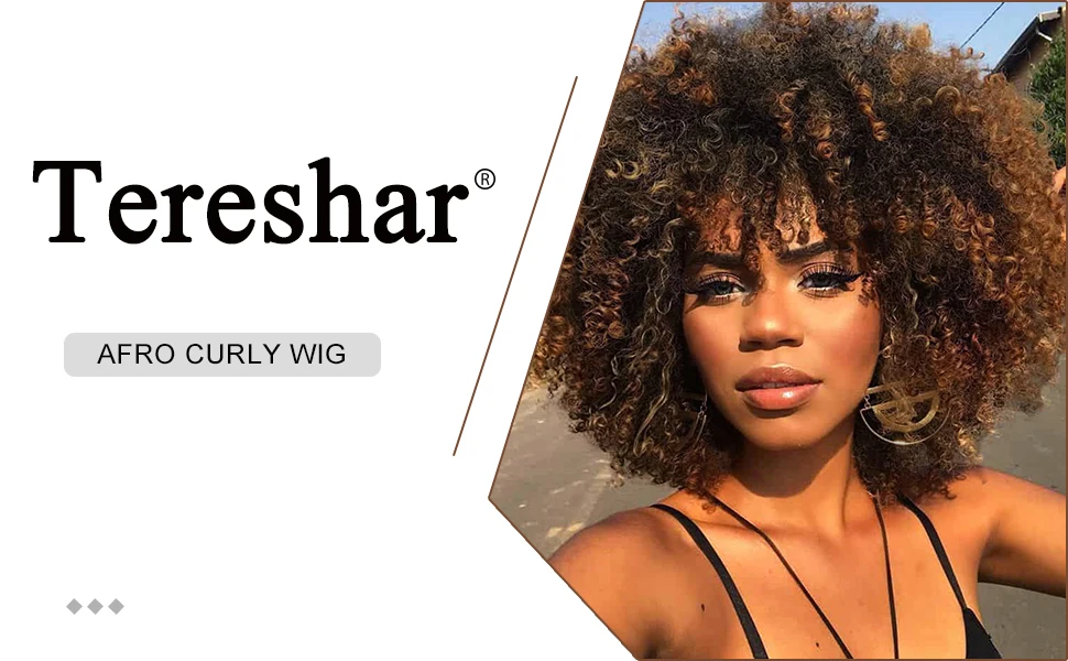 Tereshar Synthetic Short Curly with Bangs for Black Women 8 inch Afro Kinky Curly Wig Synthetic Hair Wigs for Daily Party Use