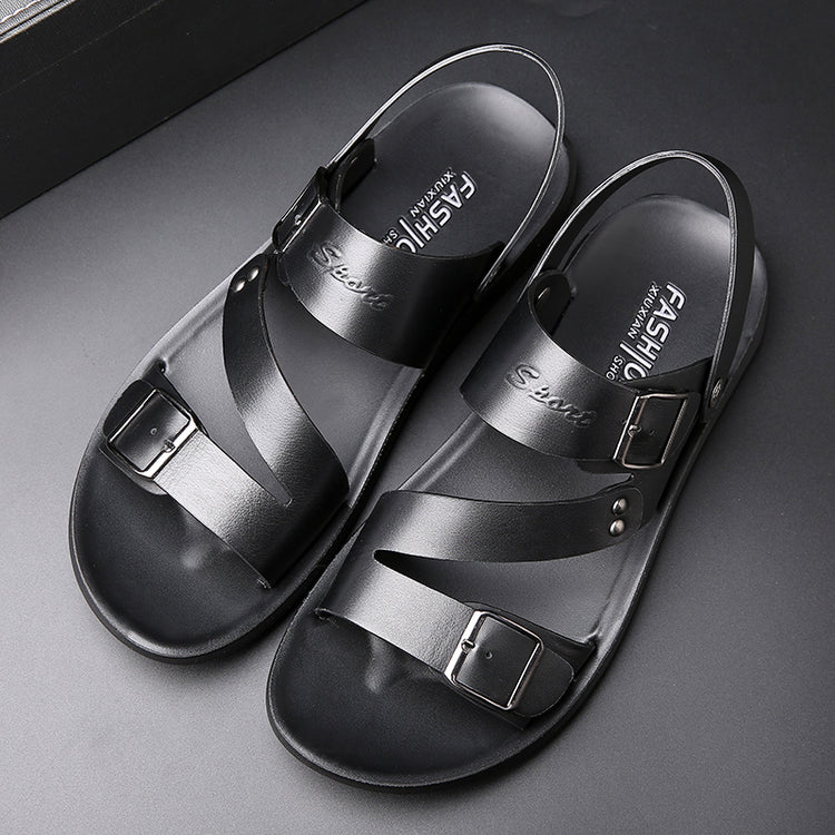 Two-layer Leather Casual Fashion Beach Shoes Thick-soled Sandals Men's Dual-use Sandals And Slippers