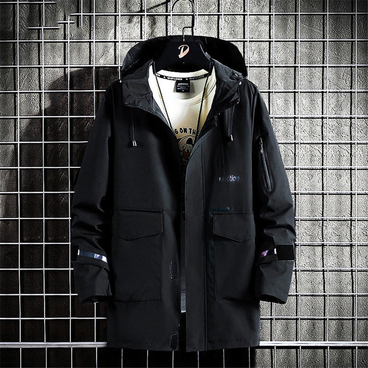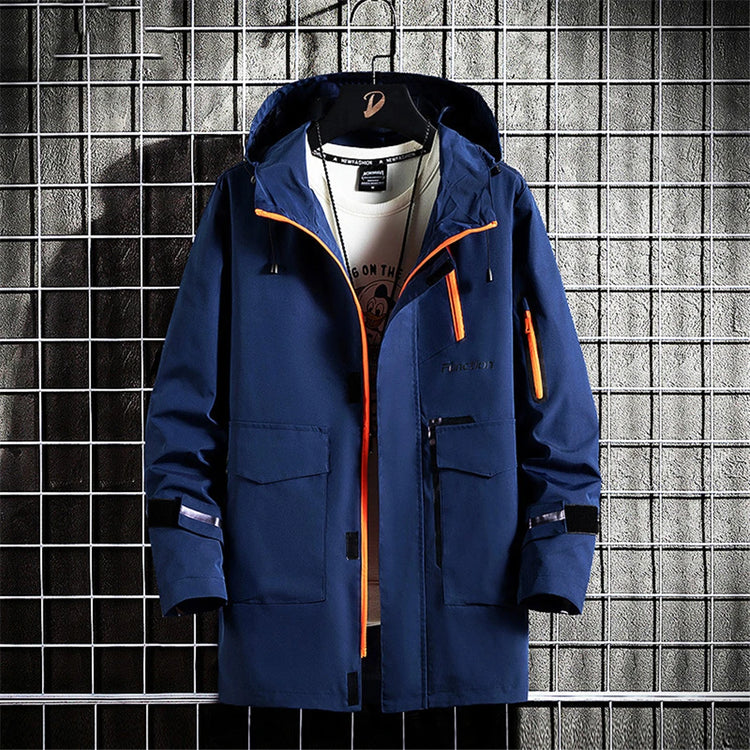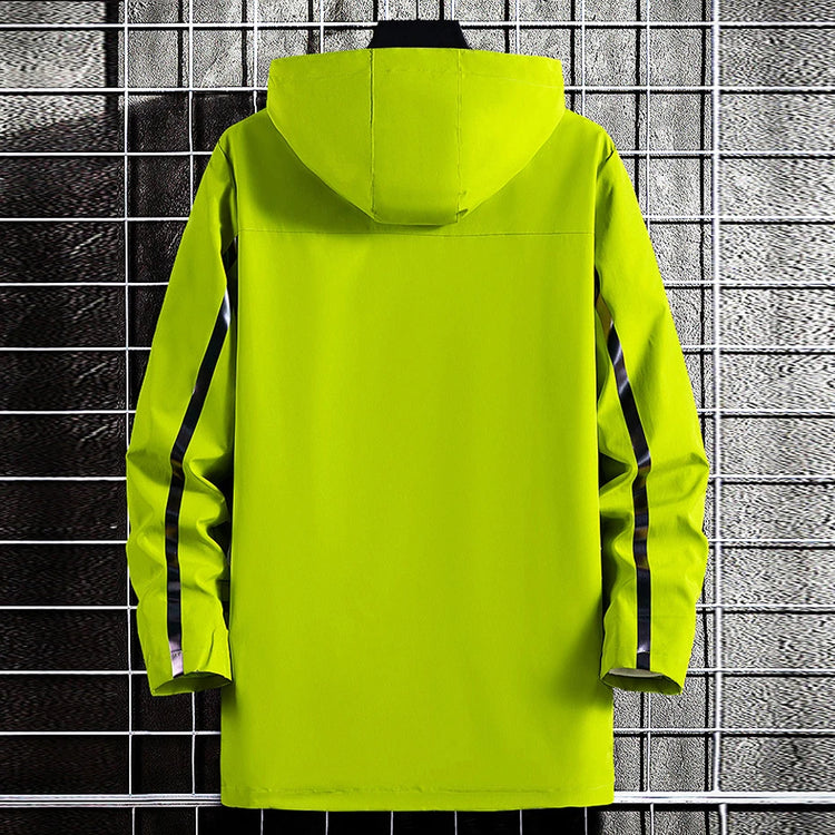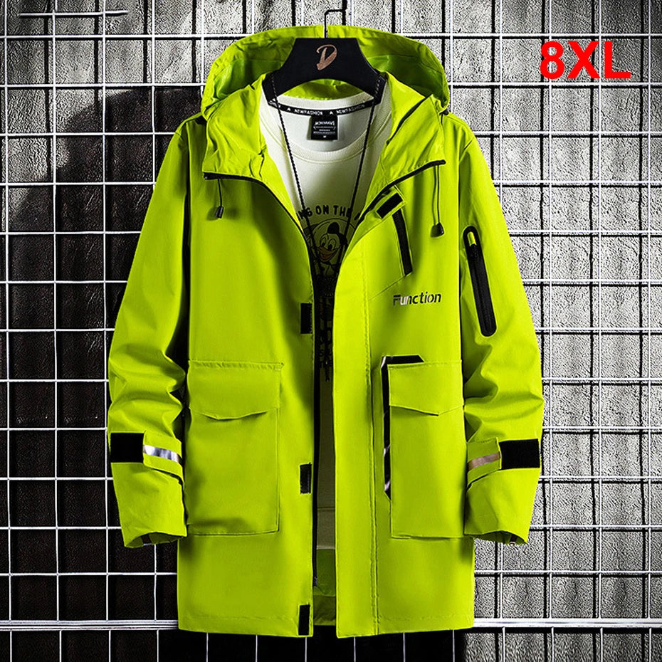 Windbreaker Jacket Men 8XL Plus Size Long Jackets Reflective Strip Design Hooded Coats Camp Jackets Male Outerwear Outdoor