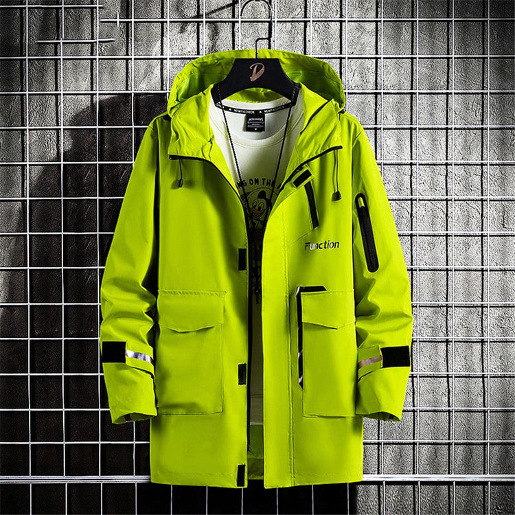 Windbreaker Jacket Men 8XL Plus Size Long Jackets Reflective Strip Design Hooded Coats Camp Jackets Male Outerwear Outdoor