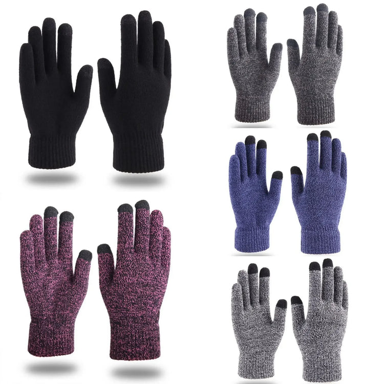 Winter Knitted Gloves Men Warm Full Finger Touchscreen Anti-Slip Gloves for Cycling Running Driving Hiking Camping Work Mittens