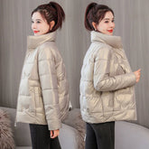 Winter Women Jacket 2022 New Fashion Glossy Cotton Padded Jacket Female Parkas Loose Short Thick Warm Casual Ladies Outwear