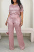 Wmstar Women Two Piece Set Spring Female Casual Shinny Sequin Round Neck Fashion Solid Short Sleeved Tshirt Wide Leg Pants Suit